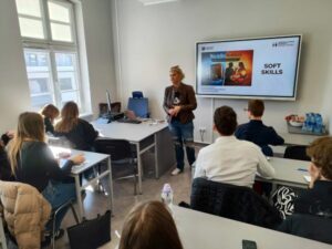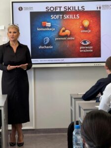 Z kolei w grupie starszej również zrealizowano zajęcia integracyjne „Ster na prawo? Doskonale. Witajcie na Wydziale”. Uczestnicy wzięli udział w warsztatach prowadzonych przez Panią dr Aleksandrę Klich „Nie tylko kodeksy – tajna broń dobrego prawnika: soft skills”, poświęconych rozwijaniu kompetencji miękkich niezbędnych w zawodzie prawnika. Ponadto przeprowadzono zajęcia dotyczące praw dziecka w realiach szkolnych, a także wykład prowadzony przez Panią mgr Dominikę Trzeszczoń i Pana mgra Bartosza Namiecińskiego „Stopy wody pod kilem, czyli co szczur lądowy powinien wiedzieć o transporcie wodnym”, przybliżający podstawowe zagadnienia związane z transportem wodnym oraz patentem sternika motorowodnego.