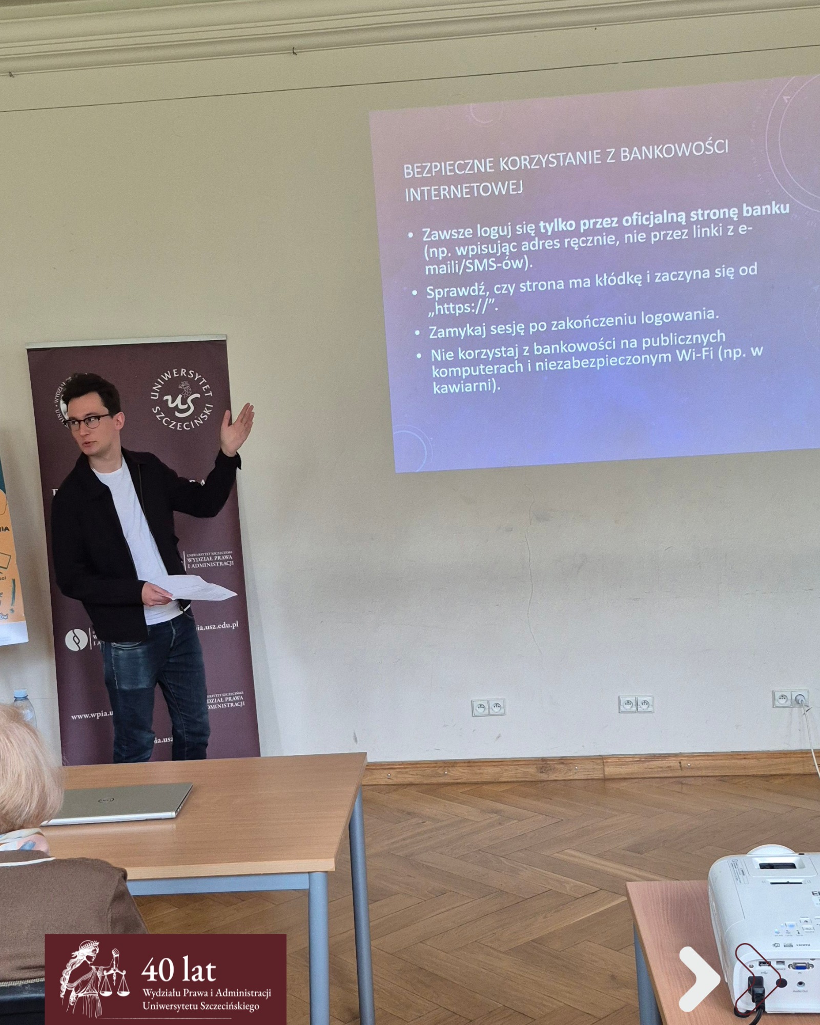 W piątek, 11 kwietnia 2025 r., w Międzynarodowym Ośrodku Badań Interdyscyplinarnych Uniwersytetu Szczecińskiego w Kulicach, odbyły się warsztaty edukacyjne pt. „Bezpieczny Senior w cyberprzestrzeni”, zorganizowane przez Koło Naukowe Cybersecuritas.
