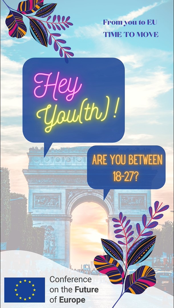Wydarzenie realizowane jest w ramach „Konferencji w sprawie przyszłości Europy”. Jest to seria debat i dyskusji prowadzonych przez obywateli, które umożliwią mieszkańcom całej Europy podzielenie się pomysłami i pomogą kształtować naszą wspólną przyszłość. Szczególnie młodzi ludzie są zaproszeni do zaangażowania się ze swoimi pomysłami i wizjami. Konferencja młodzieżowa ” From you to EU. TIME TO MOVE!” jest organizowana przez różnych partnerów sieci Europe Direct (zarządzanej przez Komisję Europejską) w regionie Morza Bałtyckiego: EUROPE DIRECT Szczecin, Halland, Odense, Gdańsk, Rostock, Hamburg, Kiel, Südschleswig, a także Joint Baltic Sea Network.