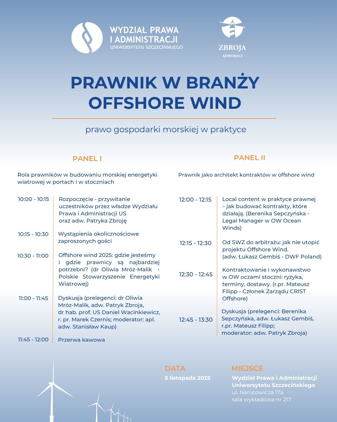 Konferencja naukowa – „Prawnik w branży Offshore Wind” – 5 listopada 2025 r. [program konferencji]