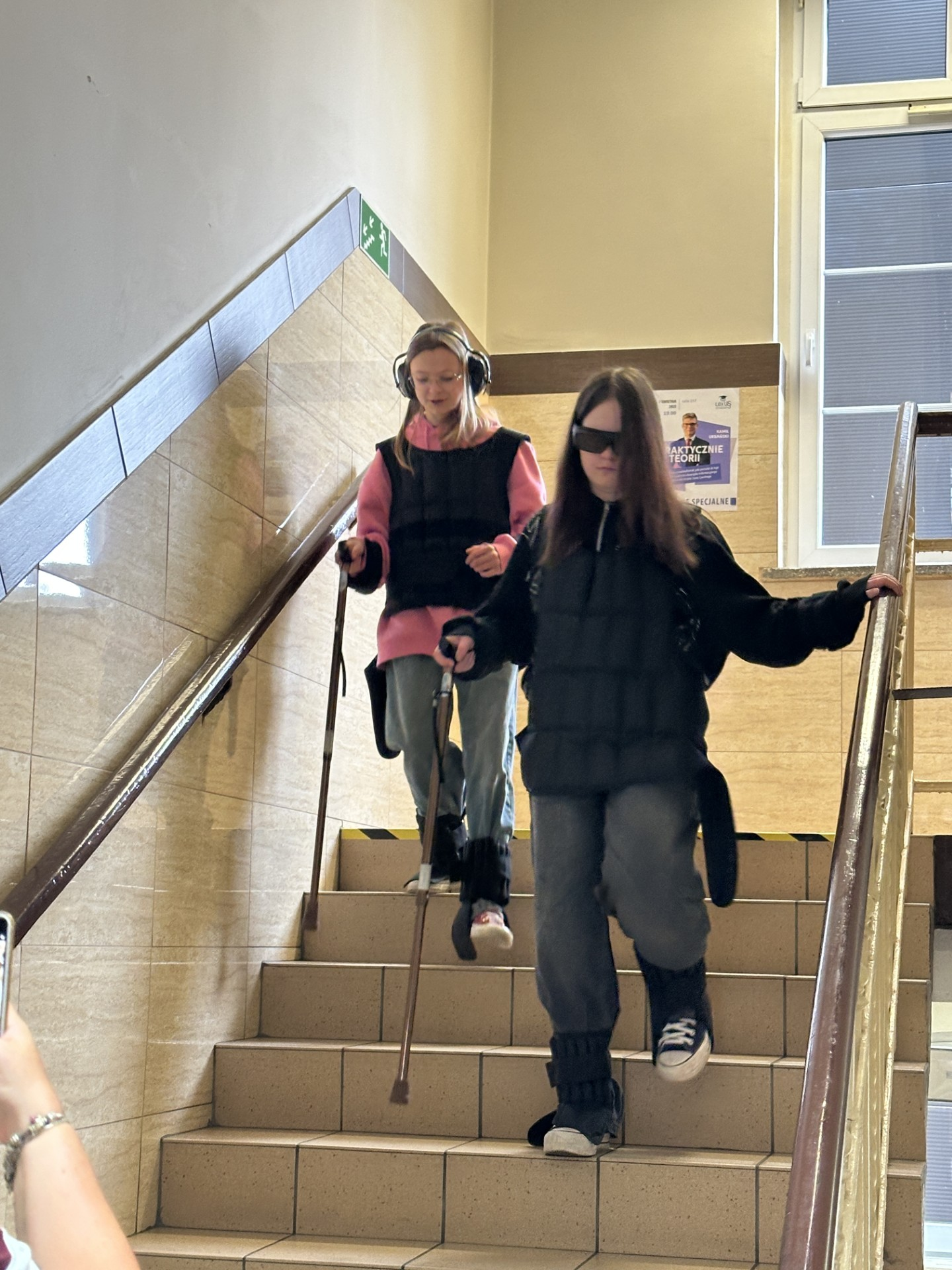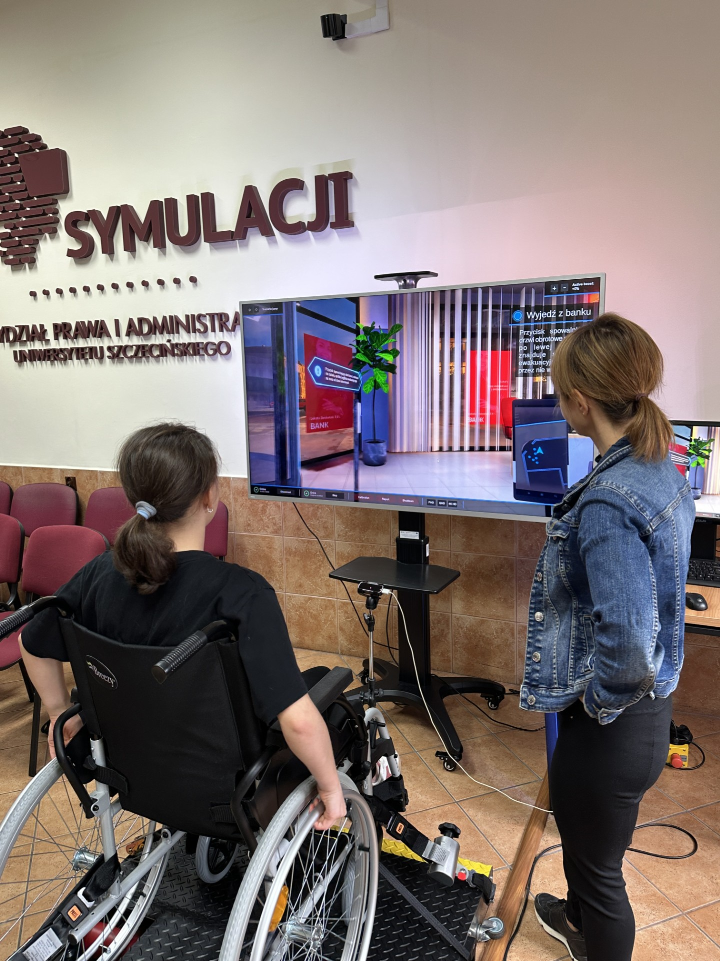 Po zakończeniu wykładów uczestnicy odwiedzili Salę Symulacji, gdzie mogli doświadczyć, z jakimi trudnościami na co dzień mierzą się osoby z niepełnosprawnościami. Umożliwiono im poruszanie się na wózku inwalidzkim oraz poznanie wyzwań związanych z ograniczeniami wzroku, co stanowiło ważny element edukacji społecznej i empatii.