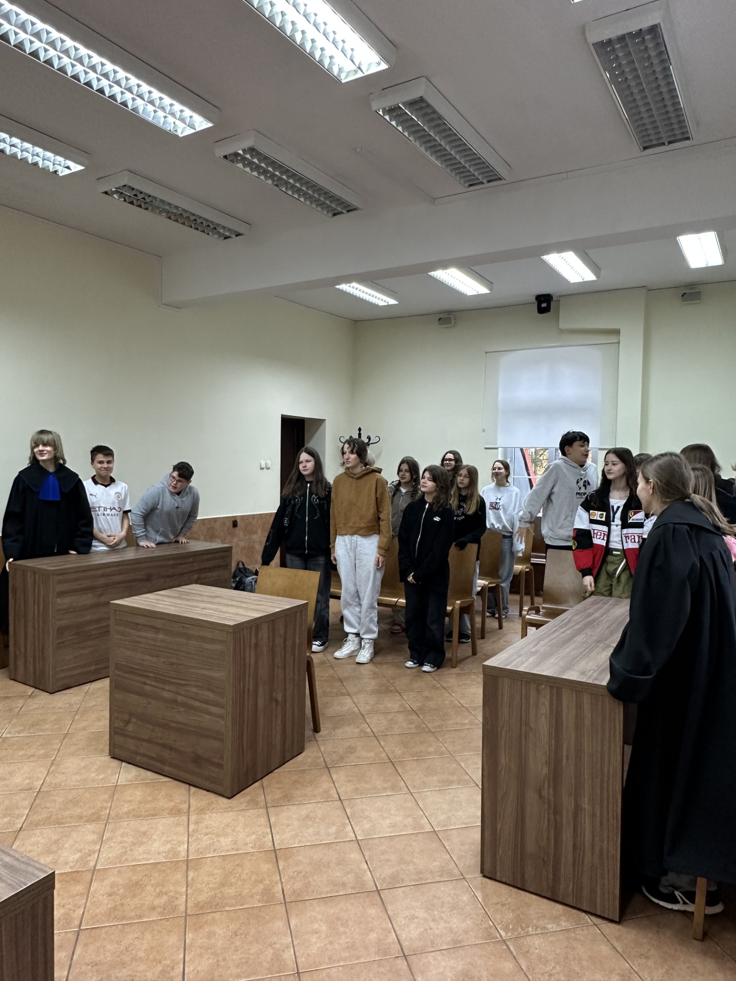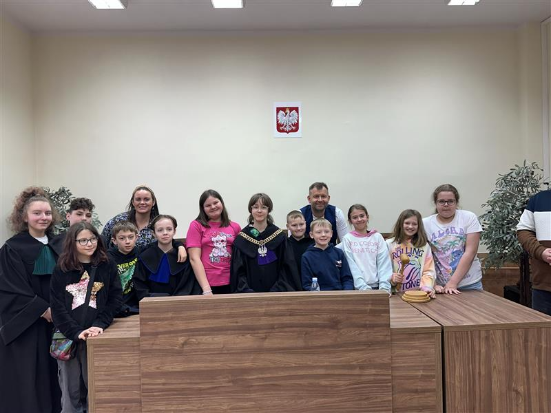 Pierwsze spotkanie skierowane było do uczniów klasy 4 Szkoły Podstawowej nr 3 w Policach. Uczestnicy mieli okazję zapoznać się z podstawowymi zasadami funkcjonowania sądu oraz porozmawiać o zagrożeniach, jakie czyhają na młodych użytkowników internetu. Szczególną uwagę poświęcono zjawisku hejtu oraz jego potencjalnym konsekwencjom prawnym. Na zakończenie spotkania uczniowie mieli możliwość przymierzenia sędziowskich tóg i wcielenia się w rolę przedstawicieli wymiaru sprawiedliwości.