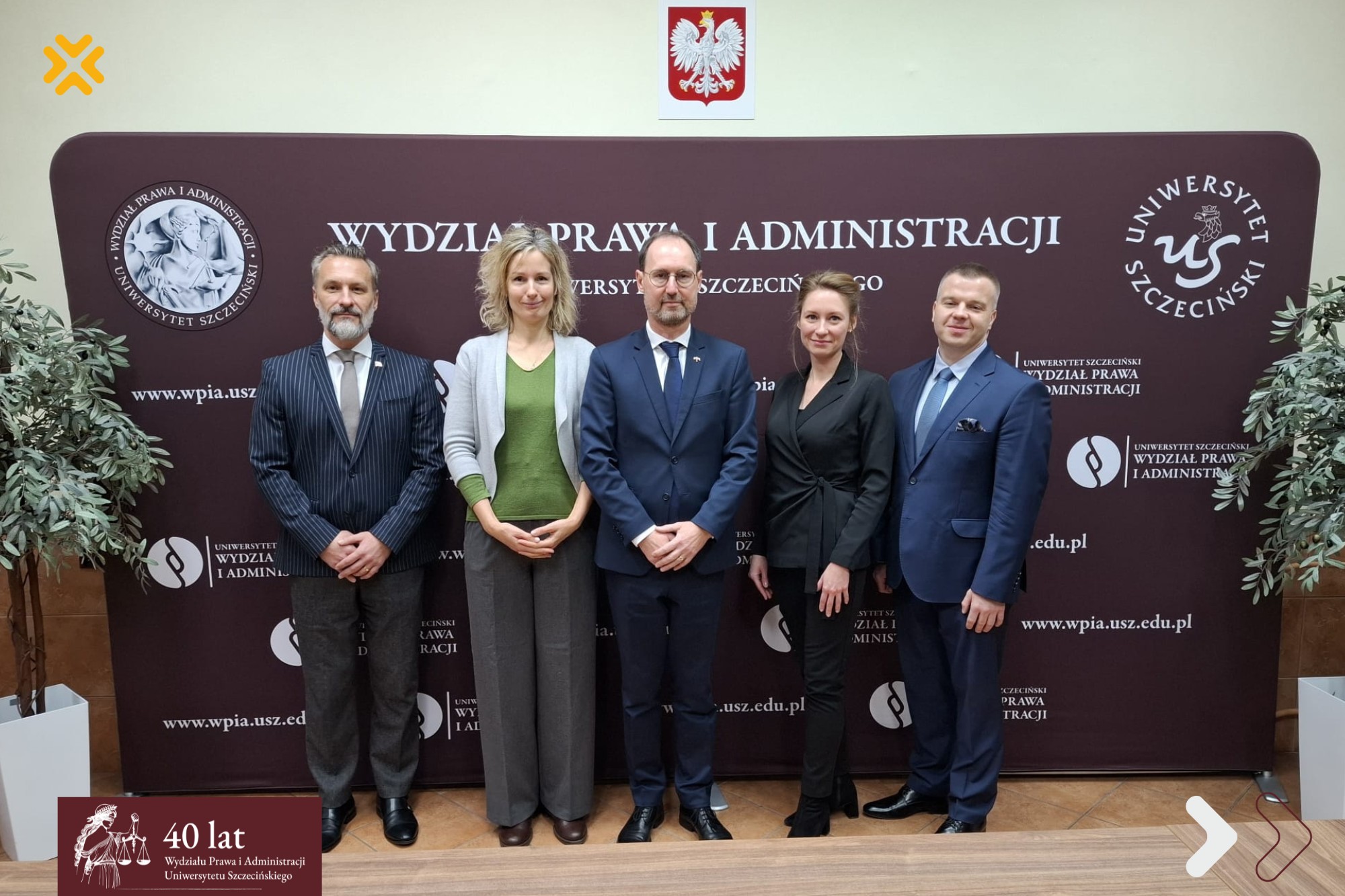 W spotkaniu z władzami Wydziału uczestniczyli również ze strony czeskiej: Karolína Ščerbej – II Sekretarz Wydziału Politycznego Ambasady Republiki Czeskiej oraz Martin Směták – Konsul Honorowy Republiki Czeskiej w Szczecinie. Wydział reprezentowali: dr Ewa Michałkiewicz-Kądziela – Prodziekan ds. Współpracy Międzynarodowej, dr hab. Mariusz Nawrocki, prof. US – Prodziekan ds. Nauki i Rozwoju oraz dr Beata Kanarek – Prodziekan ds. Kształcenia. Rozmowa potwierdziła bardzo dobrą współpracę oraz jej istotne znaczenie dla rozwoju relacji naukowych i dydaktycznych między Polską a Czechami.
