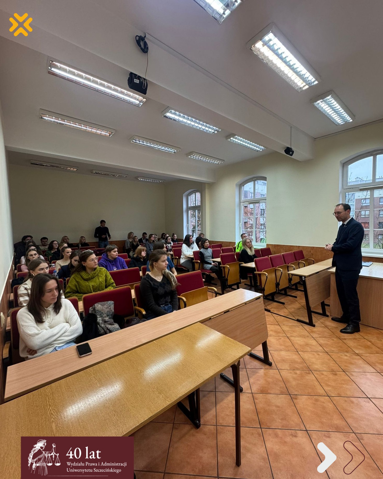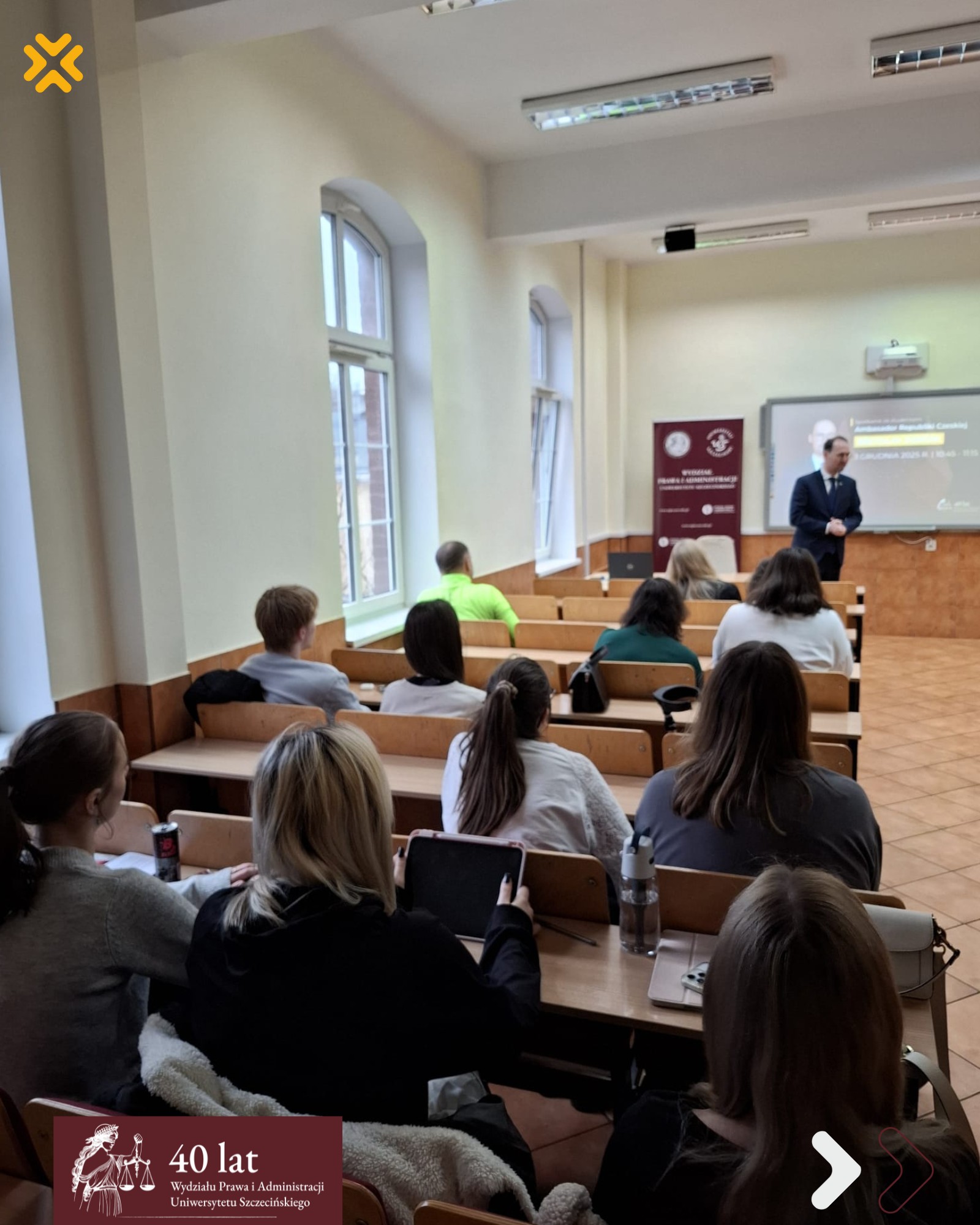 Ambasador spotkał się także ze studentami Wydziału, prezentując aktualny stan relacji polsko-czeskich oraz omawiając specyfikę pracy w służbie dyplomatycznej. Spotkanie stanowiło cenną okazję do poznania praktycznego wymiaru współpracy międzynarodowej i wyzwań stojących przed przedstawicielami korpusu dyplomatycznego.
