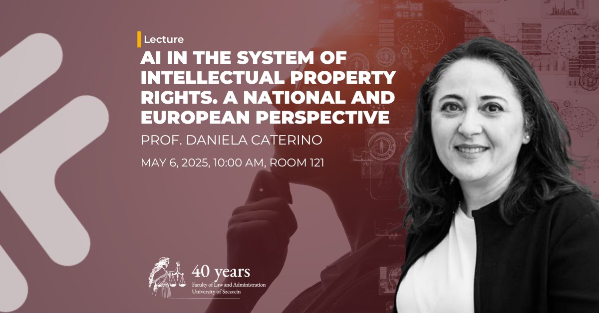 W dniu 6 maja 2025 r. o godz. 10:00 w sali 121 na Wydziale Prawa i Administracji Uniwersytetu Szczecińskiego odbył się wykład otwarty pt. „AI in the system of intellectual property rights. A national and European perspective”, w którym udział wzięli członkowie tego Wydziału, społeczność akademicka i zebrani goście. Wydarzenie odbyło się w języku angielskim. Wykład poprowadził Pani prof. Daniela Caterino z Uniwersytetu Aldo Moro w Bari (Włochy) – specjalistka w zakresie prawa gospodarczego i prawa własności intelektualnej.