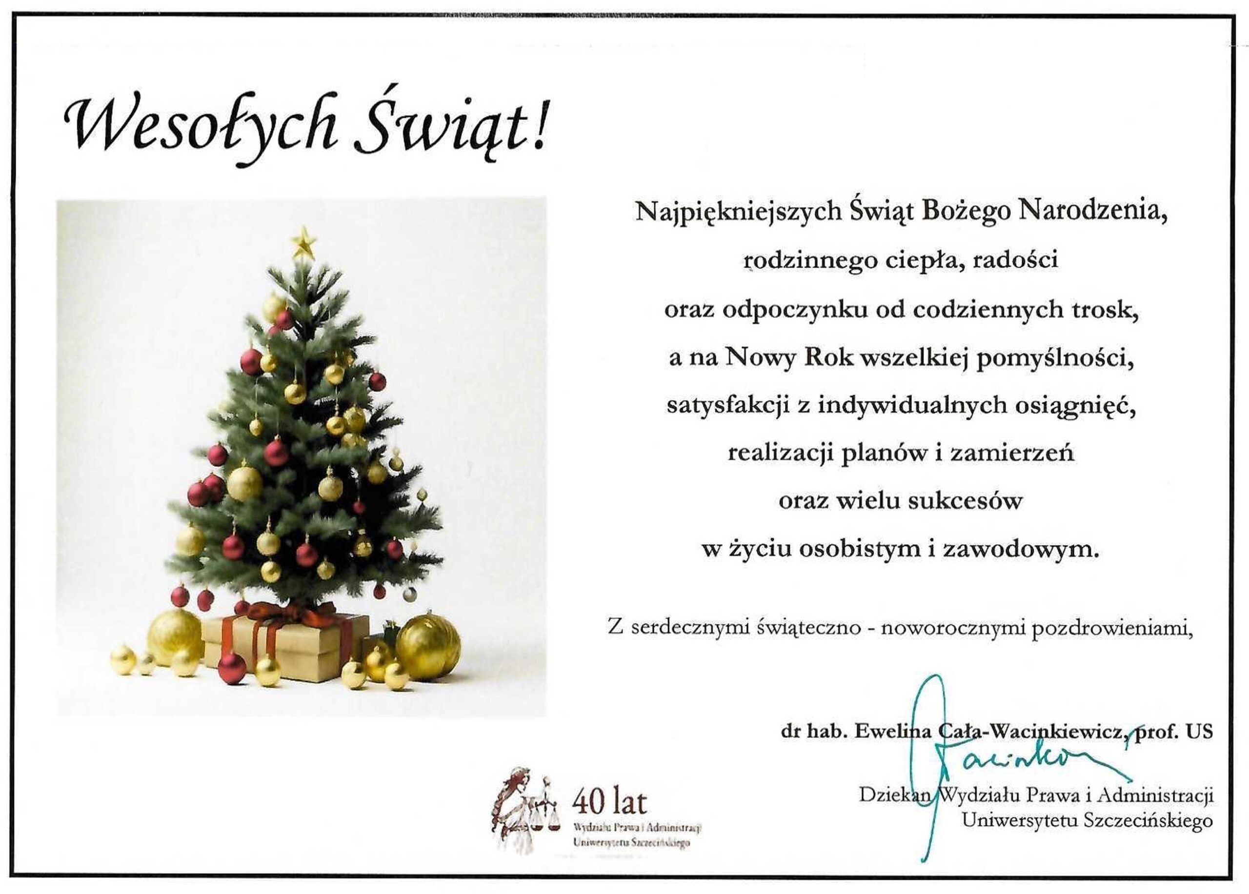 Z serdecznymi świąteczno – noworocznymi pozdrowieniami w imieniu społeczności Wydziału
